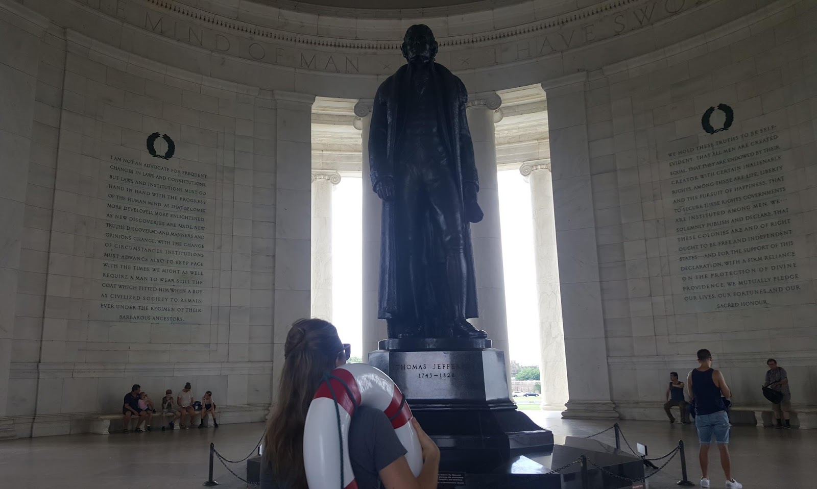 Carrying a life ring around Jefferson Memorial signified more than that alone for me however. Given Jefferson was the primary author of The Declaration of Independence, and given, even today, our freedom is at risk... With this in mind, it felt all the more meaningful to be walking around this historic site carrying a life ring.
